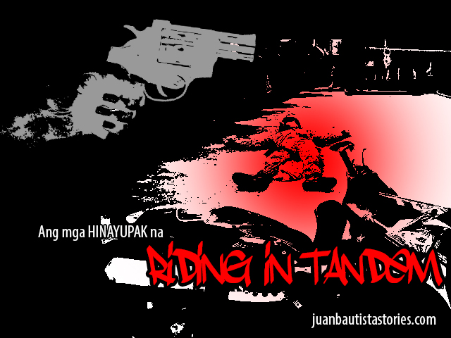 Gaano na nga ba ka-delikado ang magpakalat kalat sa kalsada ngayon? ultimo sa labas ng gate ng bahay mo tila yata hindi na din ligtas. At paano kang mapapanatag kung alam mo na may pagala galang mga ungas na handang pumatay para sa halagang dalawang libong piso. At sa dami nila ngayon, yung iba siguro may promo pa. “Kami na lang i-hire niyo ser! Kill 1 Take 1 pagkatira namin sa mismong target pati yung katabi lilikidahin na din namen! ‘Tu Payb’ na lang!”