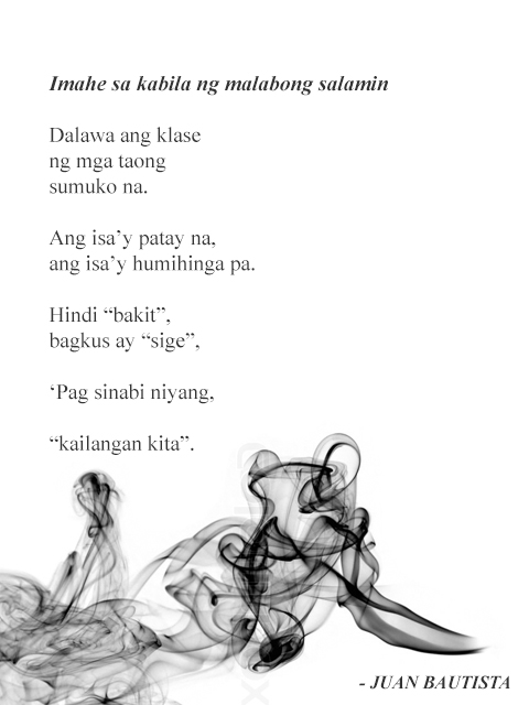 Sa edad kong treinta y singko, hindi na ‘ko takot mamatay. Bakit? Dahil naniniwala akong mas may naiambag pa ‘ko kaysa sa ibang mga nakakatanda sa’kin. Isa ‘yun sa mga dahilan kung bakit nagpapasalamat ako sa Maykapal, dahil sa kabila ng mga kagaguhan at kakulangan ko sa buhay ay nagawa ko pa rin naman ang isa sa mga pinakaimportante kong responsibilidad sa buhay. Ito ay ang maghayag ng aking isipan at damdamin – sa pamamagitan ng pagsusulat. Continue reading “HAMON”